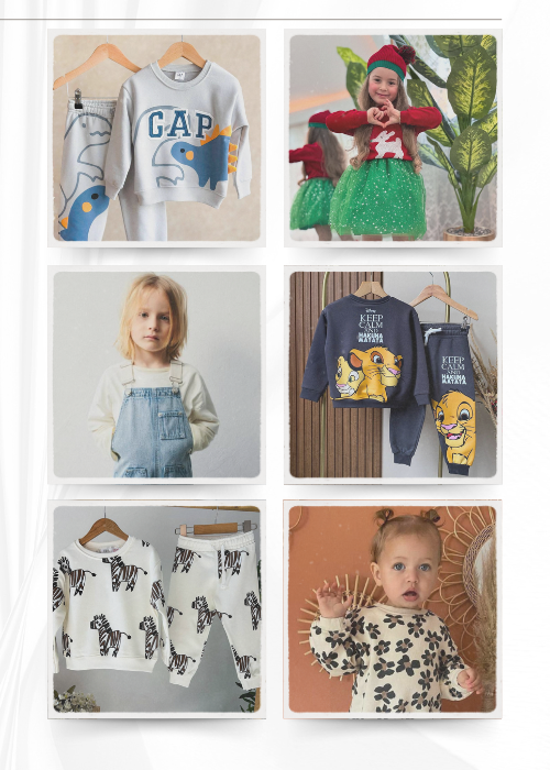 Her biri özel tasarlanmış, modayı yansıtan çocuk kıyafetleriyle tarzı ön plana çıkarıyoruz.
