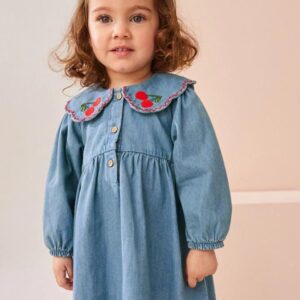 Kiraz Nakışlı% 100 Pamuk Kot Elbise