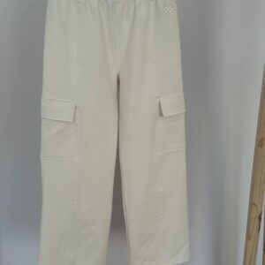 %100 Pamuk İki İplik Kız Çocuk Ekru Kargo Düz Paça Eşofman