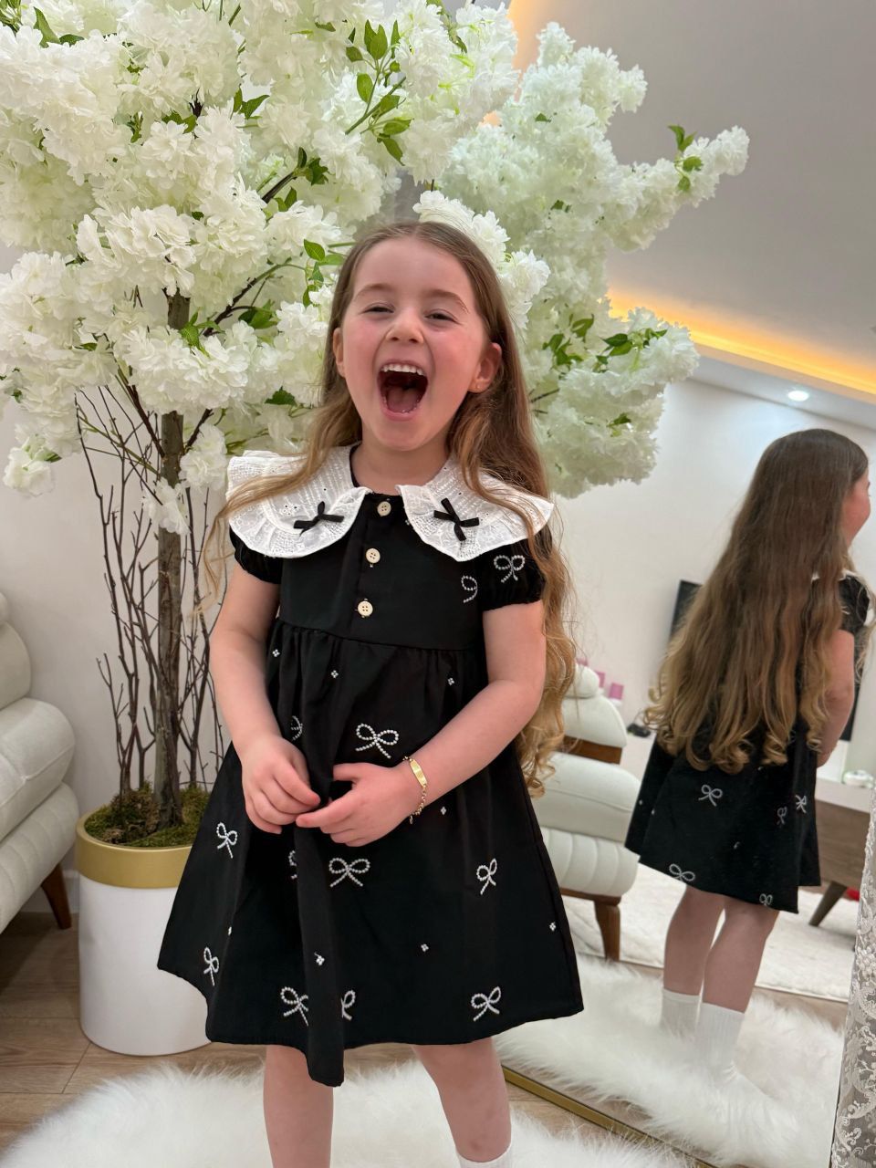 Bebe Yaka Kurdela Detaylı Siyah  Elbise