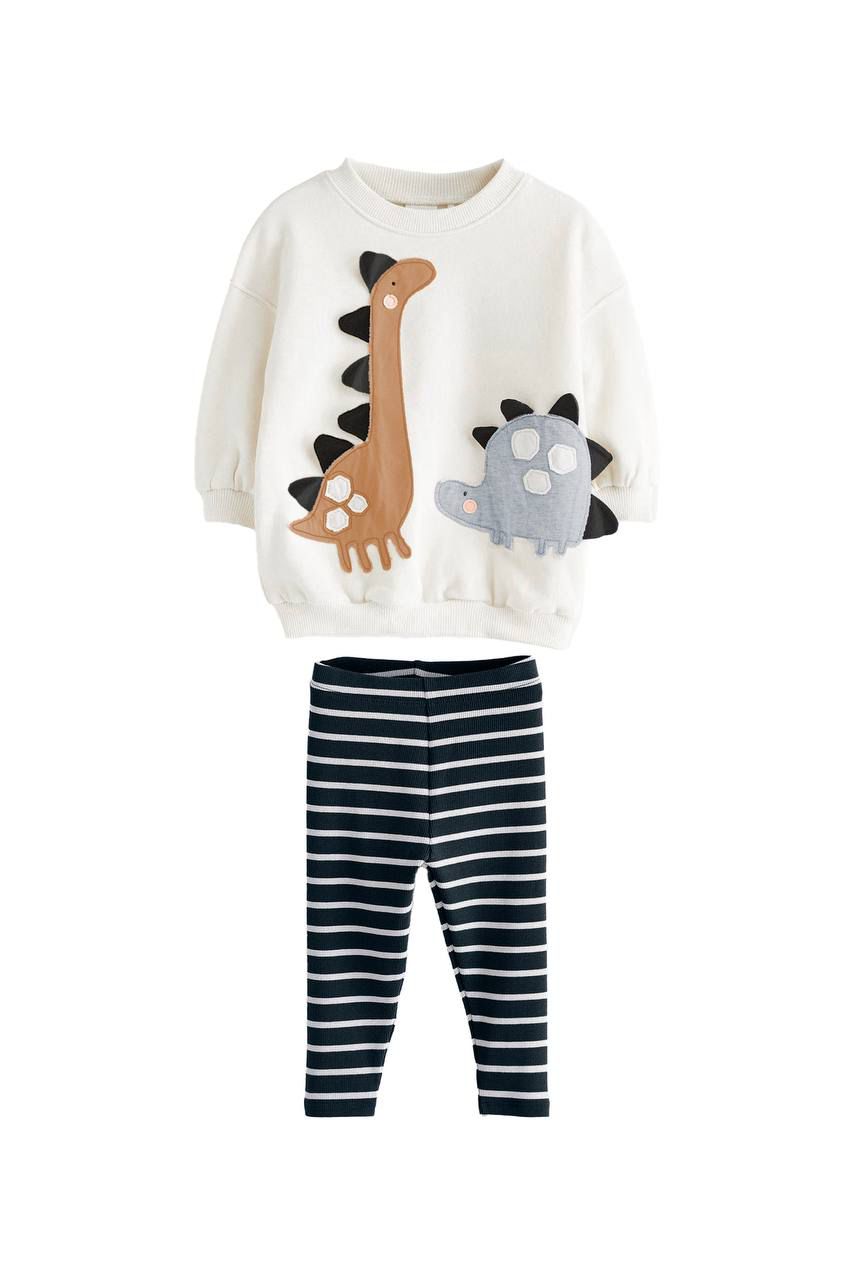 Dinasour Patch Nakışlı Taytlı Takım 3 İplik % 100 Pamuk Şardonsuz Fırçalı Kumaş