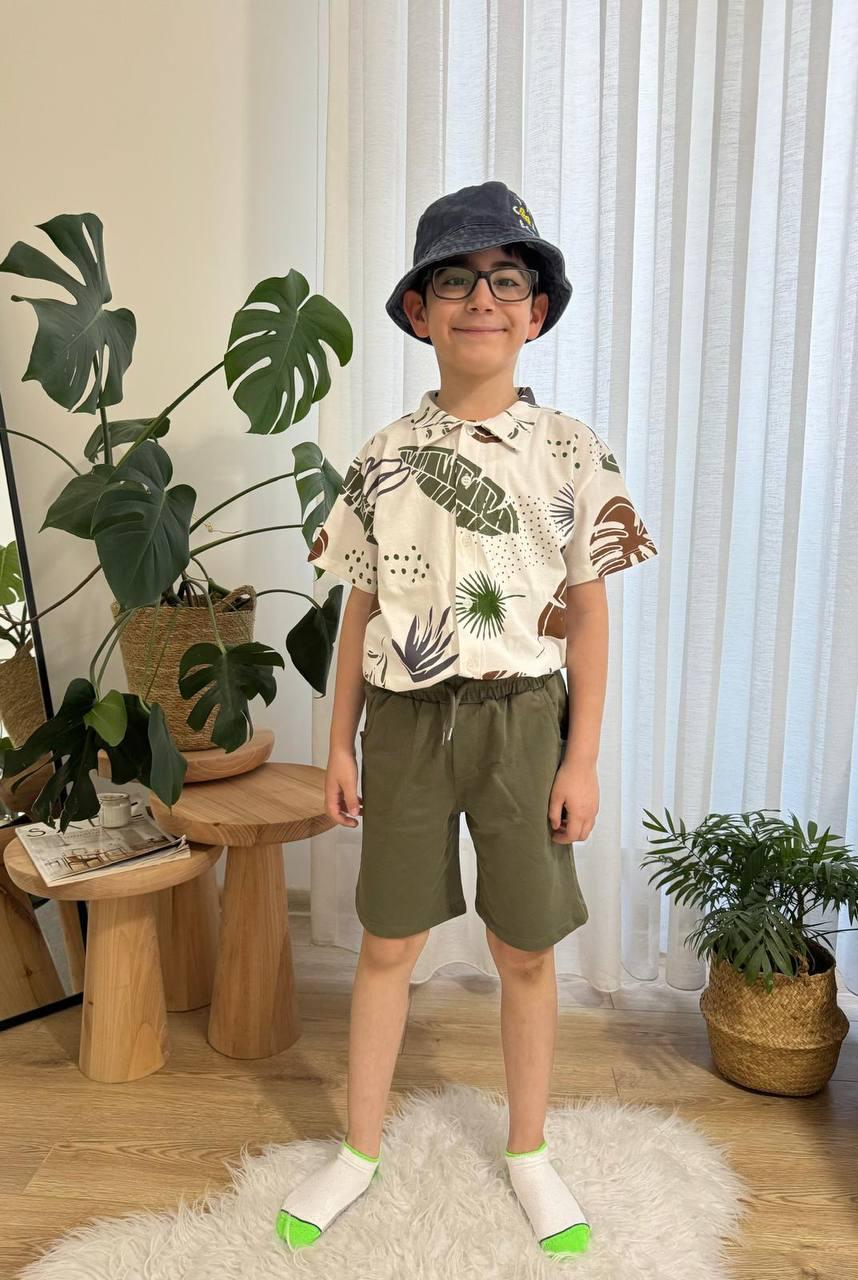 Gömlek Yaka Yaprak Baskılı Penye Şortlu Takım