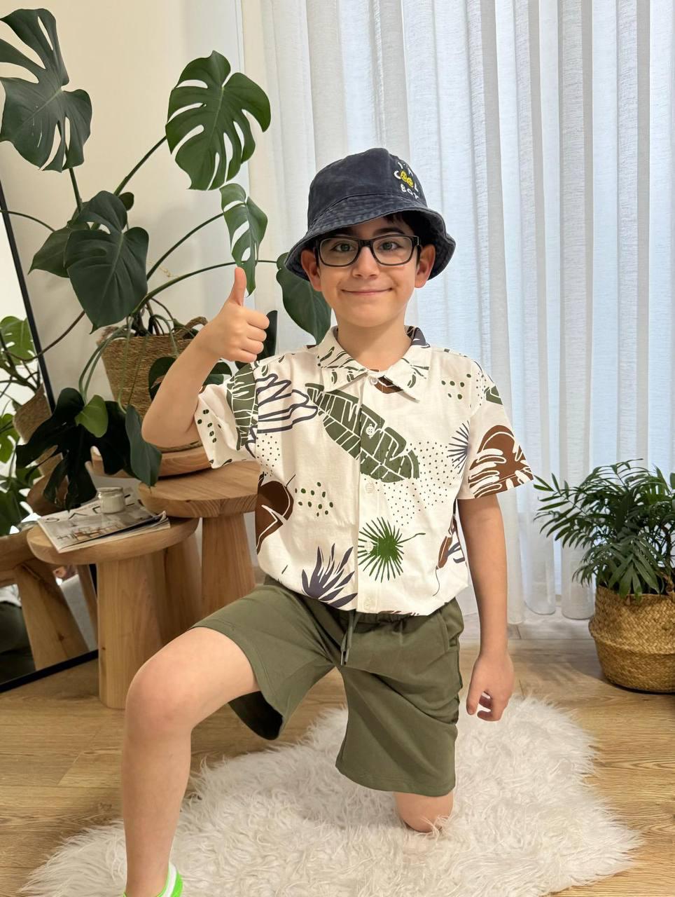 Gömlek Yaka Yaprak Baskılı Penye Şortlu Takım %100 Pamuk Kumaş
