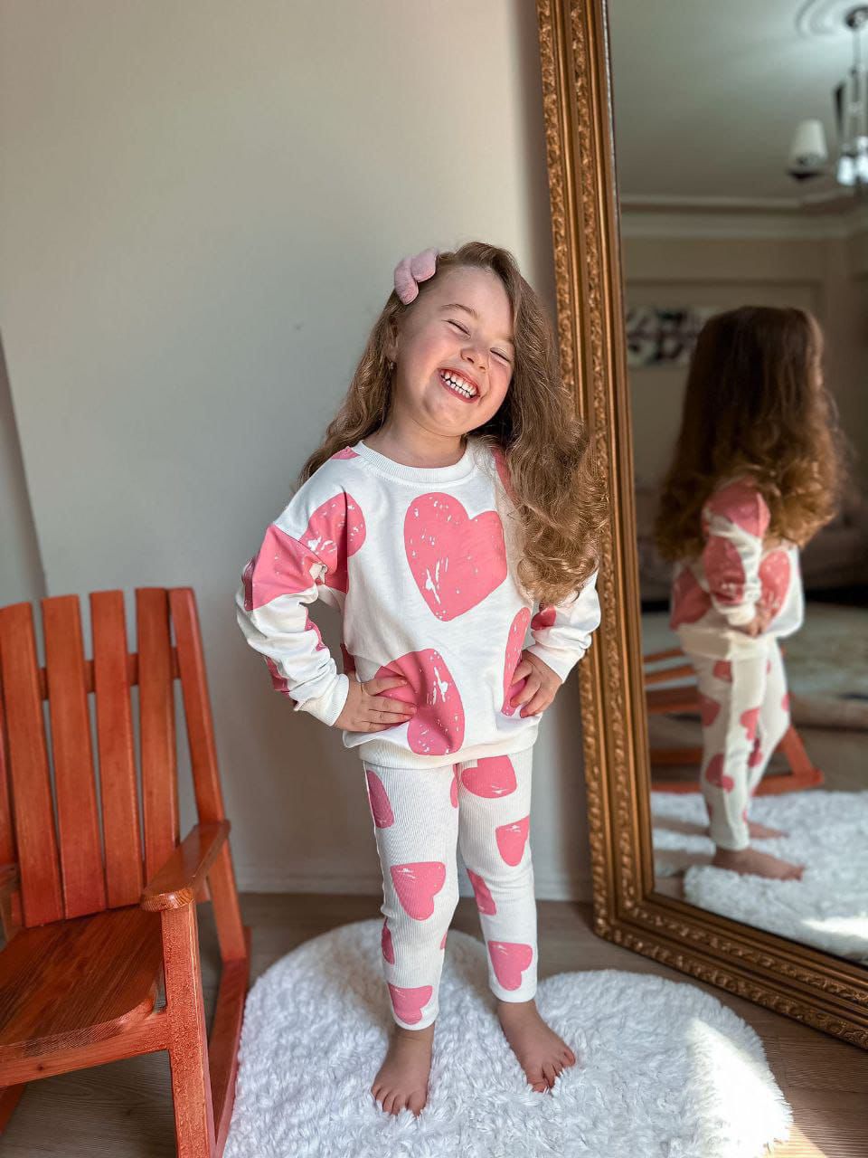 Kalp Desenli % 100 Pamuk Ribana Taytlı Takım