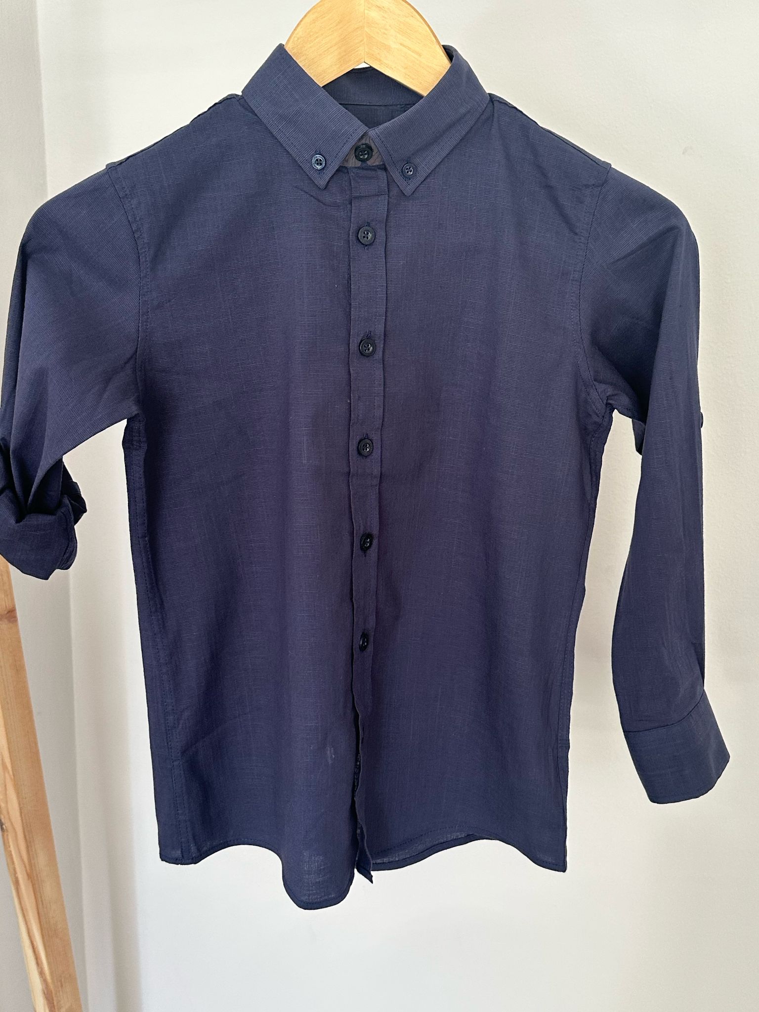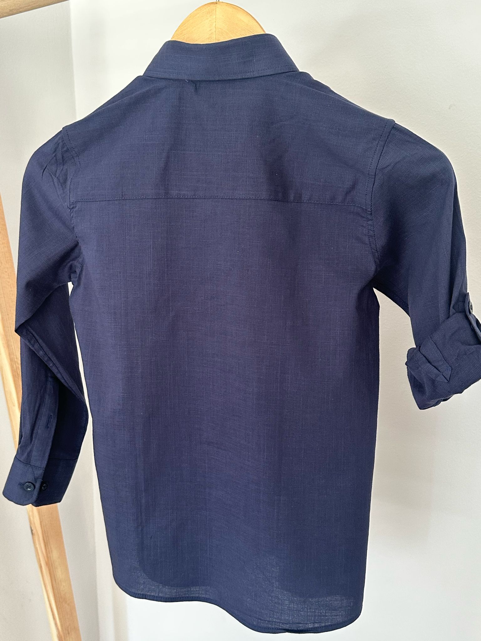 Lacivert Katlanabilir Kollu Gömlek % 98 Pamuk-%2 Elastan Kumaş