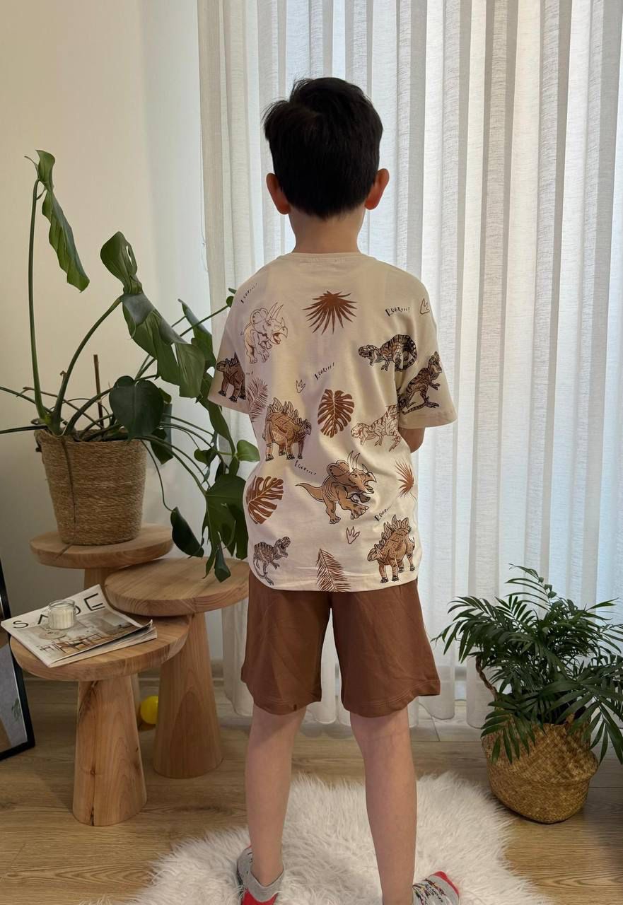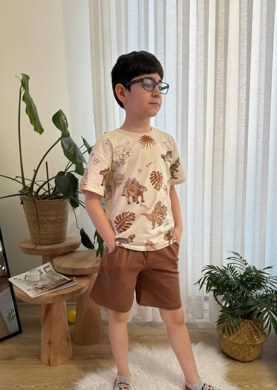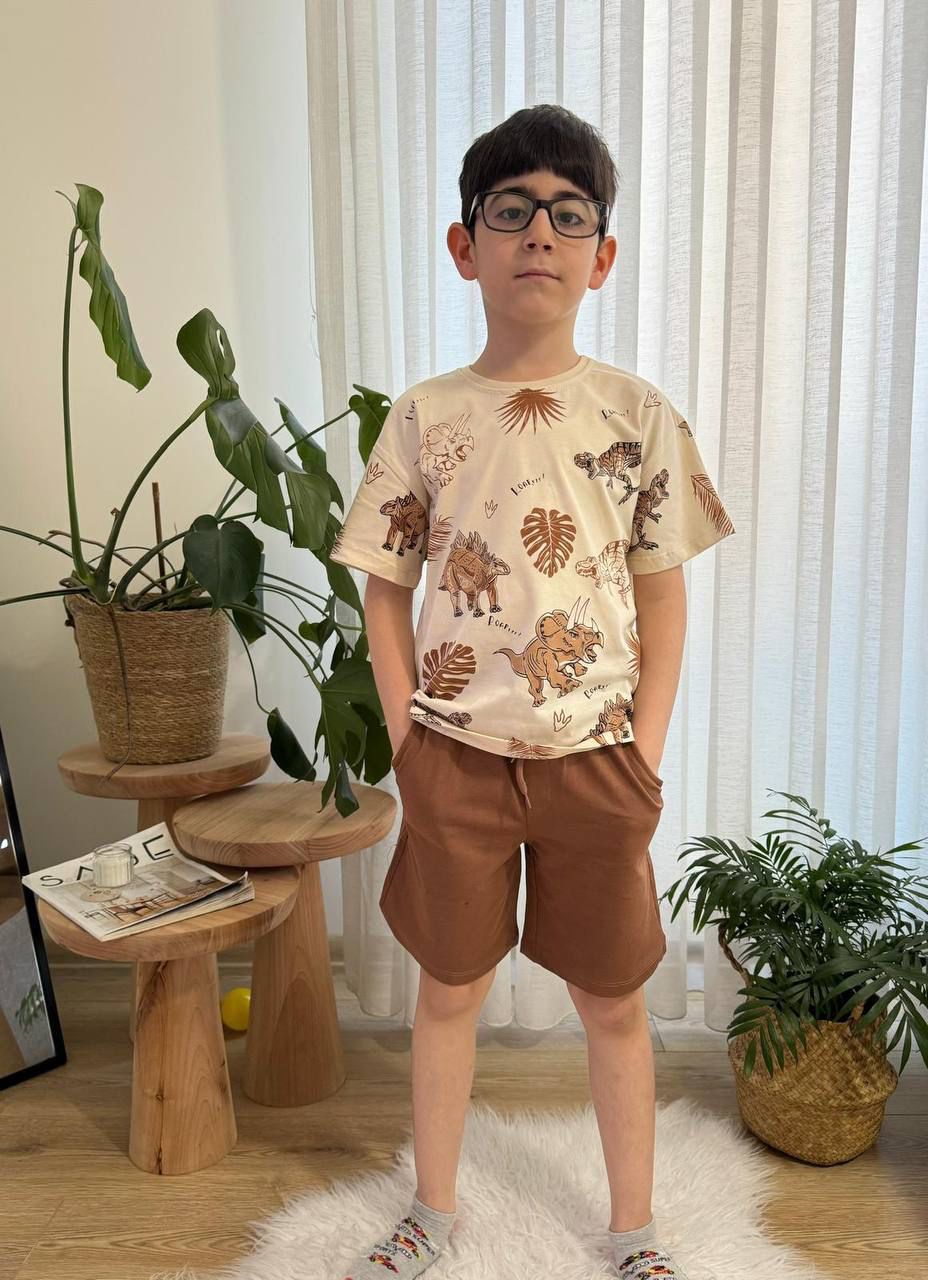 Marka Muadili Hayvan Baskılı %100 Pamuk Kahve Şortlu Takım